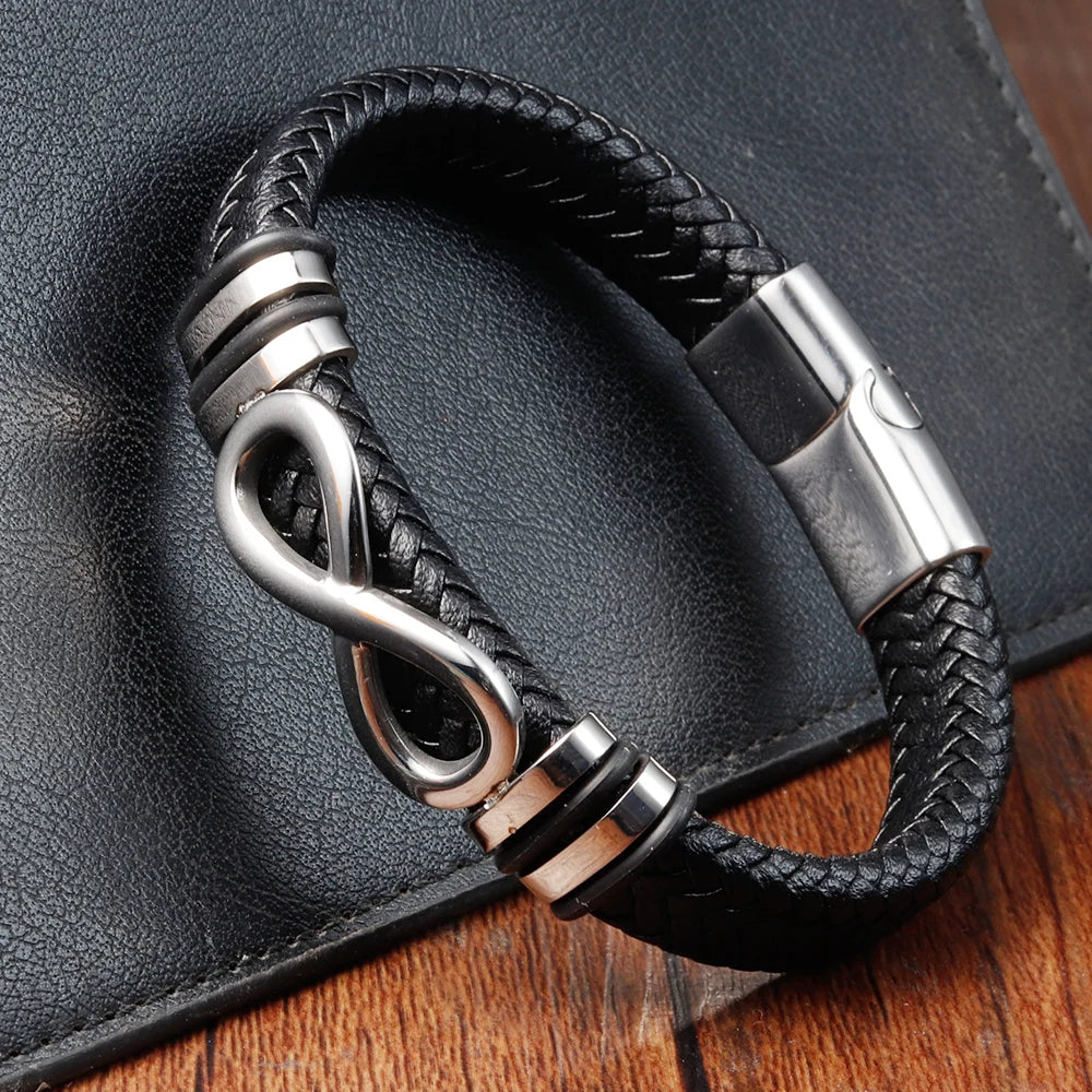 According to Feng Shui, the metal element represents wealth, clarity, and authority, while leather symbolizes grounding and resilience. Worn on the left hand — your receiving side — this bracelet helps attract financial opportunities, leadership roles, and respect in business and life.