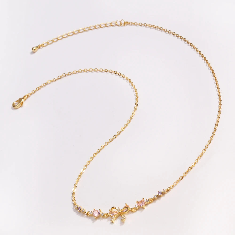 Orexy™Y2K Sweet Pink Zircon Bowknot & Heart Necklace – Playful Charm with a Touch of Luxury