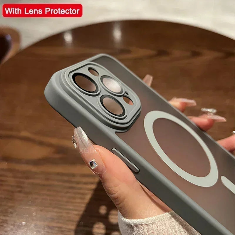 Original Case For iPhone 17 Air 16 15 14 13 12 11 Pro Max Plus For Magsafe Magnetic Wireless Charge Lens Protector Matte Cover